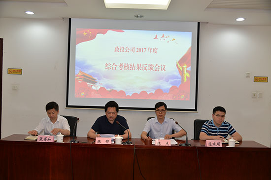 6月27日上午,市委第四考核组莅临政投公司,开展2017年度综合考核反馈会议。会议由公司党委书记、董事长、总经理陈杰主持,领导班子成员陈继良、杨兴武、罗钦,公司中层以上干部、所属子公司主要负责人和部分职工代表共30人余参会。