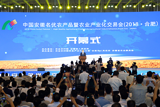 9月15日,一年一度的安徽省农业盛会—中国安徽名优农产品暨农业产业化交易会(2018·合肥)在合肥滨湖国际会展中心隆重开幕。省委书记、省人大主任李锦斌宣布展会开幕。农业农村部党组成员、中央农办秘书局局长吴宏耀,省委副书记、省长李国英分别致辞。开幕式由副省长张曙光主持。