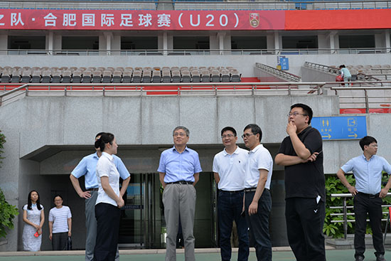 王文松一行先后来到合肥市国际人才公寓和合肥体育中心,实地查看人才公寓建筑沙盘、部分精装样板房和体育中心场馆相关场馆运营情况。