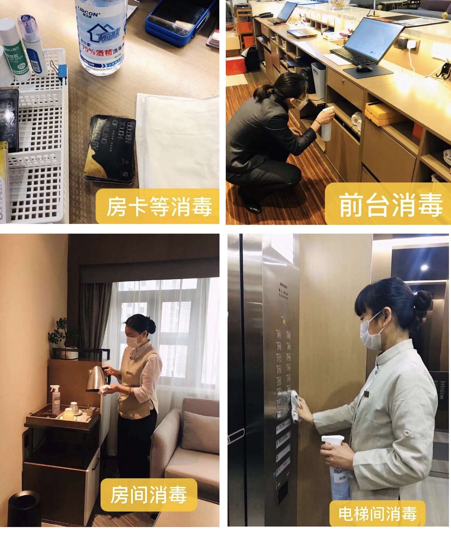 加大对疫情及防护措施宣传力度,制定和落实防护措施。对酒店所有区域以及员工宿舍进行不间断消毒,要求所有人员必须佩戴口罩上岗。在酒店门口增加体温检测点,对进入酒店人员进行体温检测,并做好记录,如发现异常及时上报并做好防范措施。对餐饮营业时间进行调整,暂停中餐厅营业,无条件响应“退订”政策。每日汇总员工身体状况,密切关注疫情发展并采取有力措施加以应对。