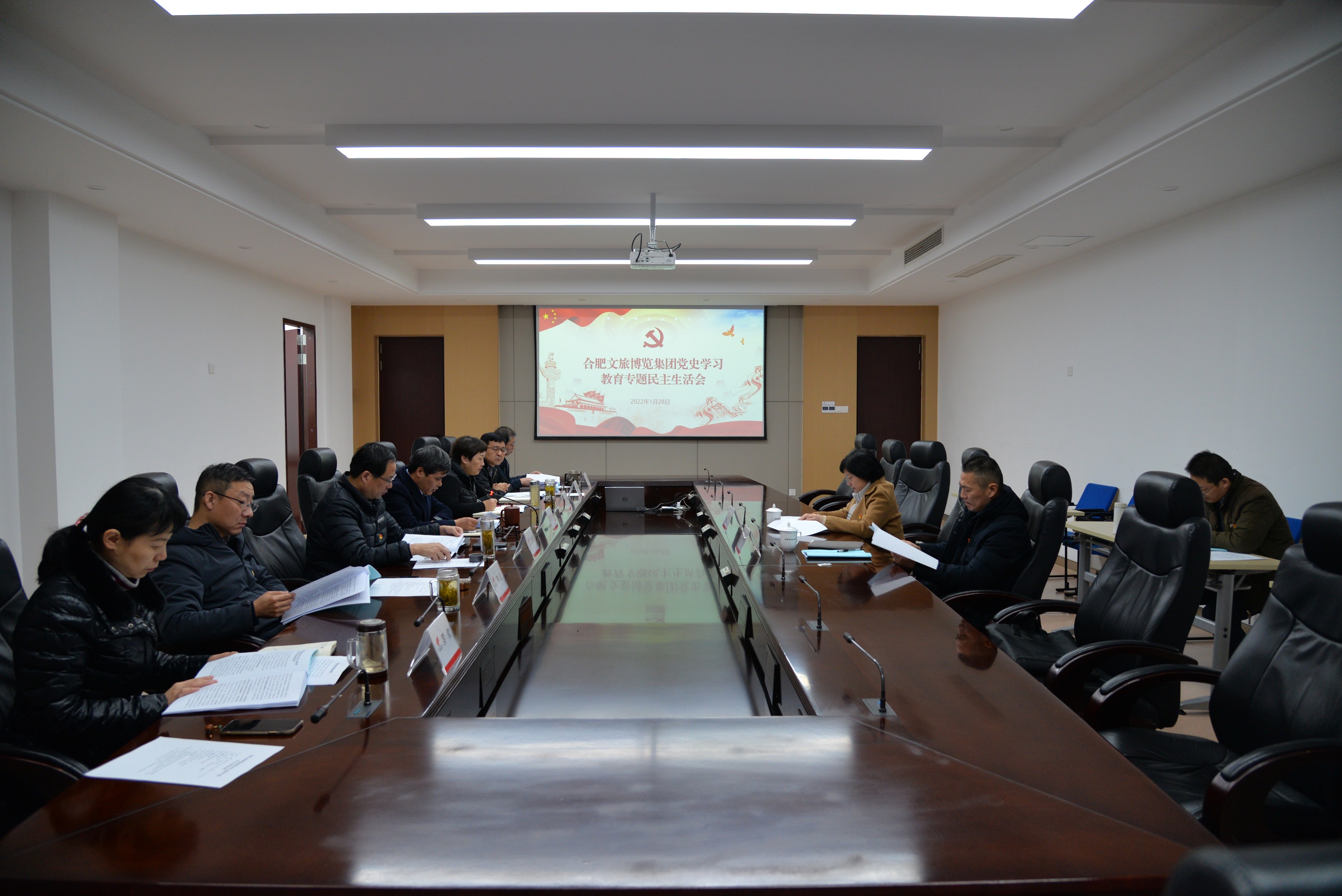 2022年1月28日上午,合肥文旅博览集团党委召开党史学习教育专题民主生活会。市国资委党委委员、副主任吴翔翎,组织人事处处长李君祥到会指导。集团党委领导班子成员参加会议,集团党委书记、董事长陈杰主持会议。