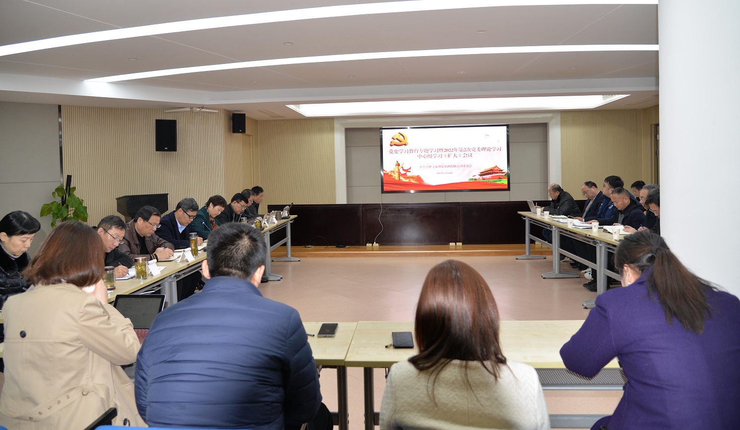 2月14日上午,合肥文旅博览集团召开2022年第2次党委理论学习中心组学习(扩大)会议。集团党委书记、董事长陈杰主持会议,集团党委班子成员、各支部书记、集团本部中层干部、所属企业主要负责同志参加学习。