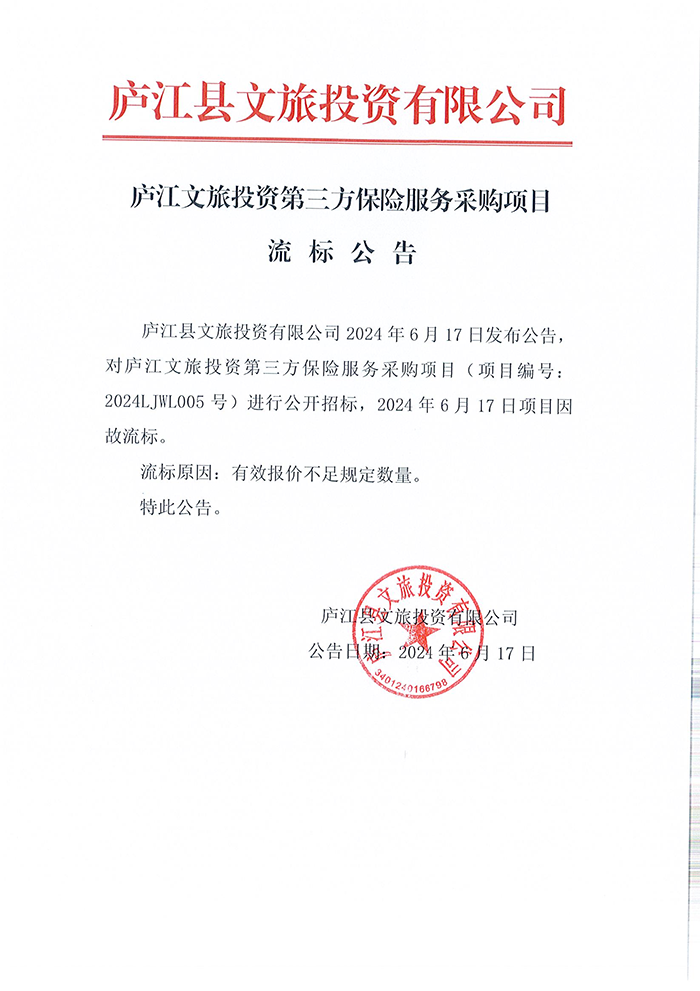 庐江文旅投资第三方保险服务采购项目流标公告