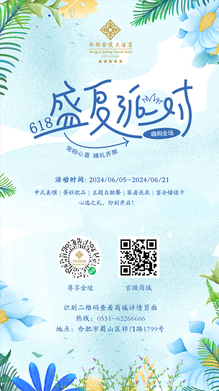 6月5日到6月21日,泓瑞金陵酒店开启“618”惊喜大促!各种优惠盲盒等你来开。