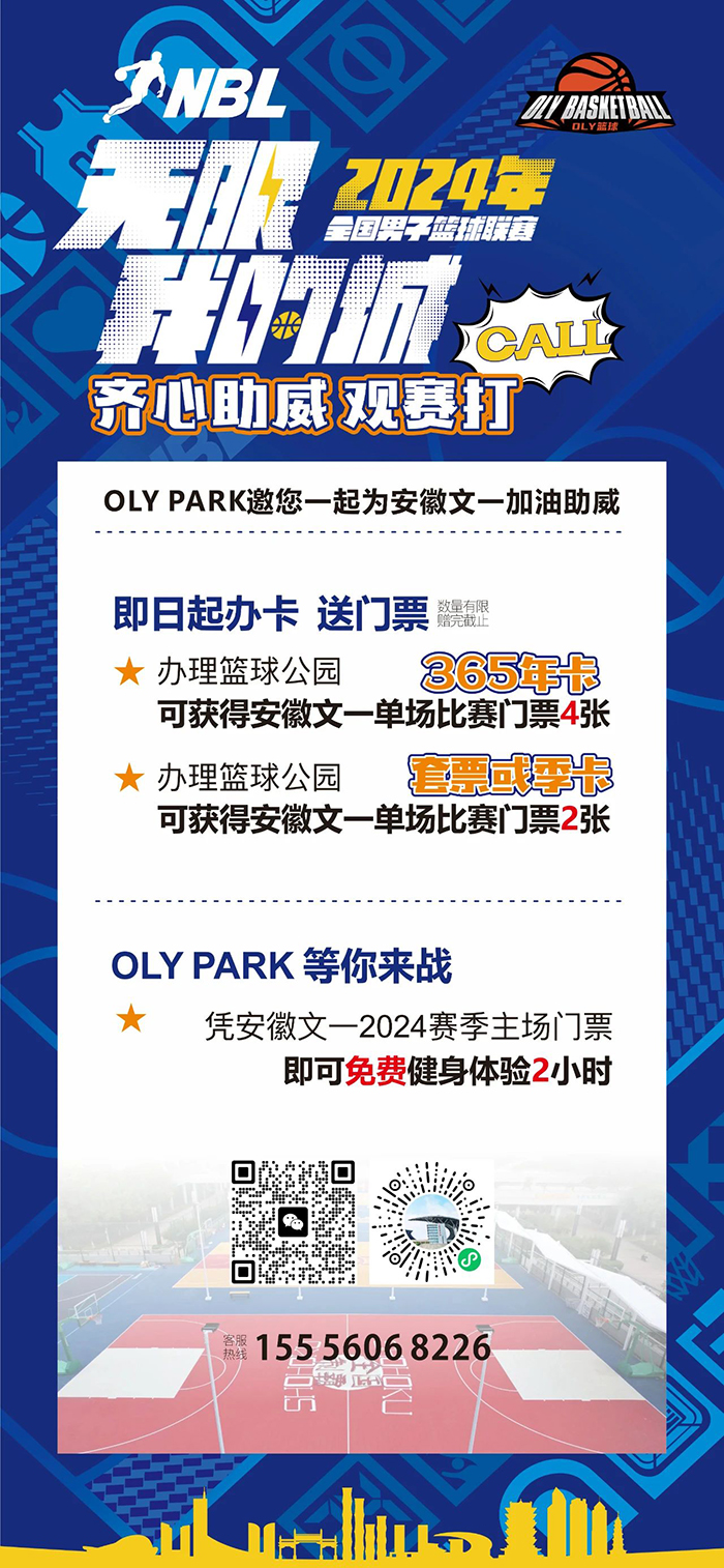为助力安徽文一2024赛季,传递篮球精神,即日起在OLYPARK篮球公园办理年卡即送安徽文一单场比赛门票4张;办理套票或季卡即可获得安徽文一单场比赛门票2张;凭安徽文一2024赛季主场门票即可免费健身体验2小时。这个夏天,OLYPARK等待每一个热爱篮球的你。