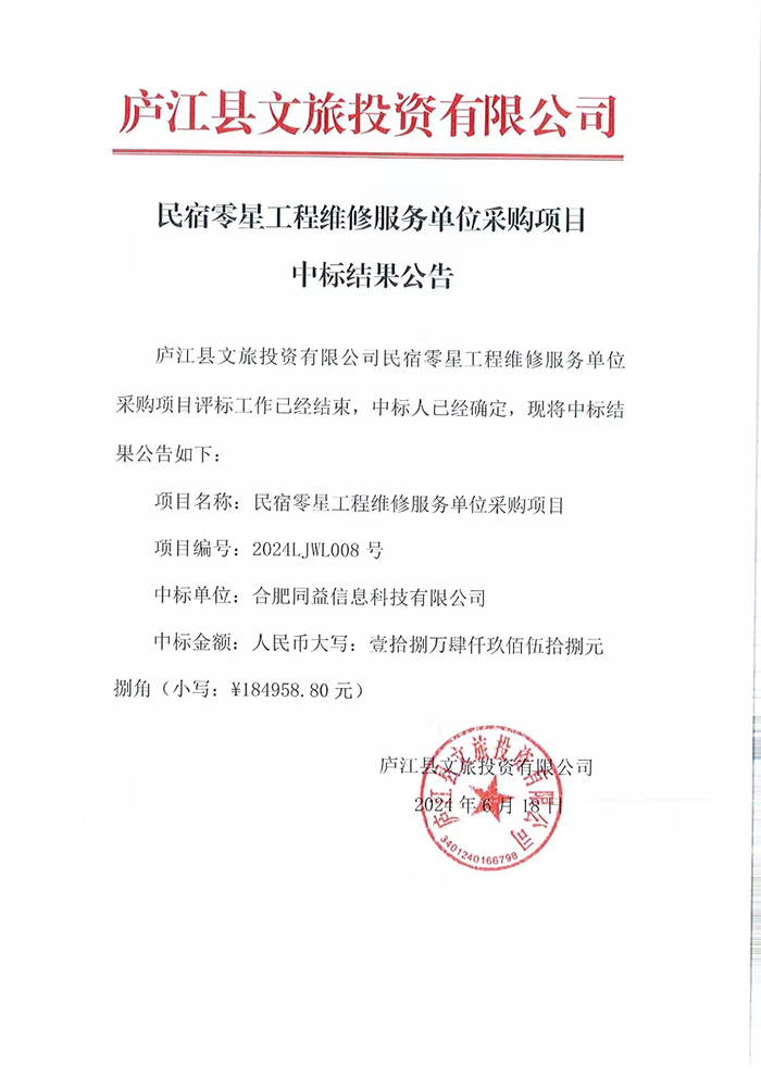 时间:2024-06-18 14:50:24 庐江县文旅投资有限公司 浏览:1019